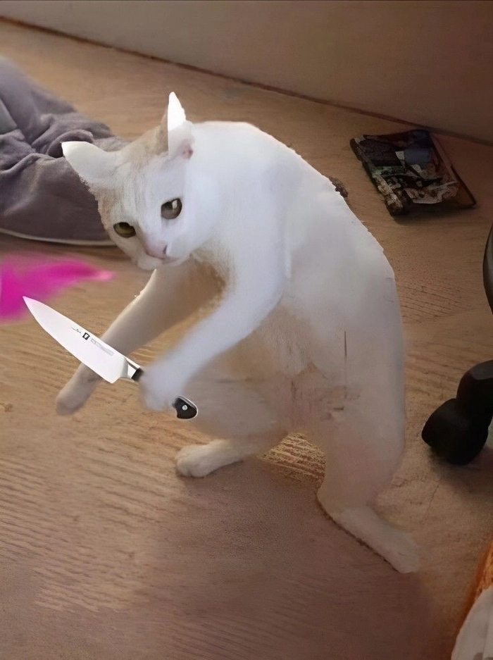 Meme mèo bựa cầm dao khiến ai cũng chú ý